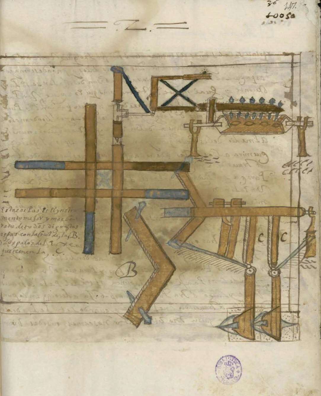 Orozco Gamarra y Bartolomé Inga, «Secretos de las minas de Indias»: página codificada y dibujos. Ms 994Biblioteca nacional. Madrid#mineria#Potosi#Tecnología#ciencia#historia#España#virreinato